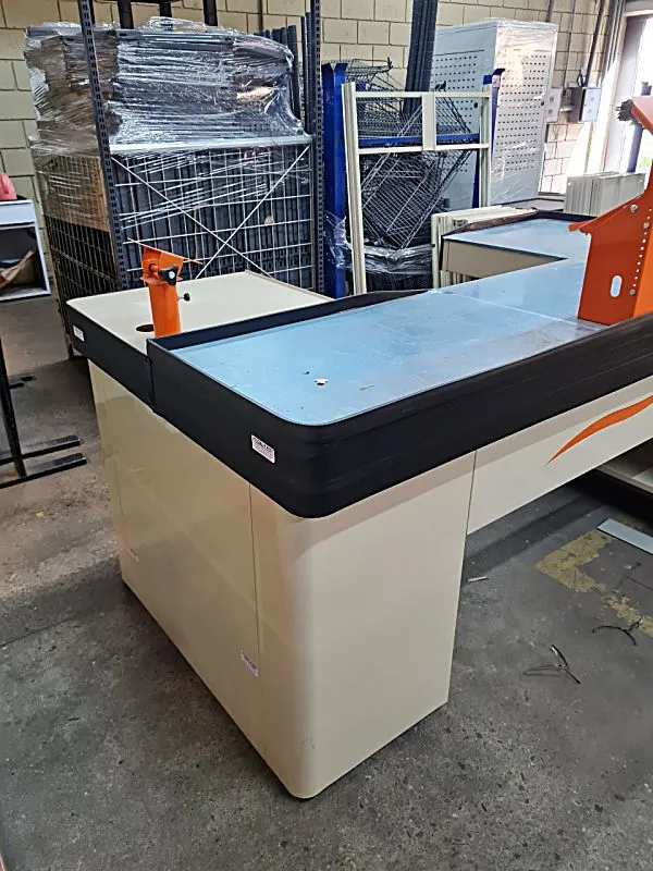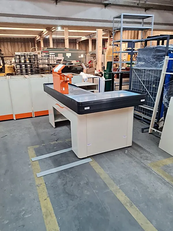 Sua função é organizar os produtos durante a finalização da compra, facilitar o trabalho do operador de caixa e otimizar o atendimento ao cliente. Normalmente, conta com áreas para esteira, suporte para sacolas e espaço de armazenamento inferior.
