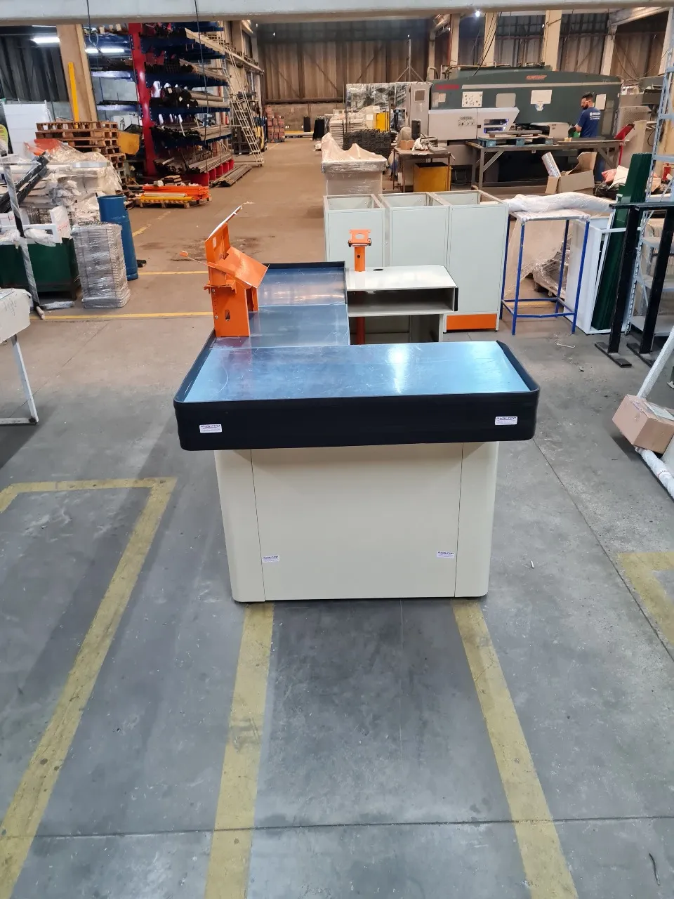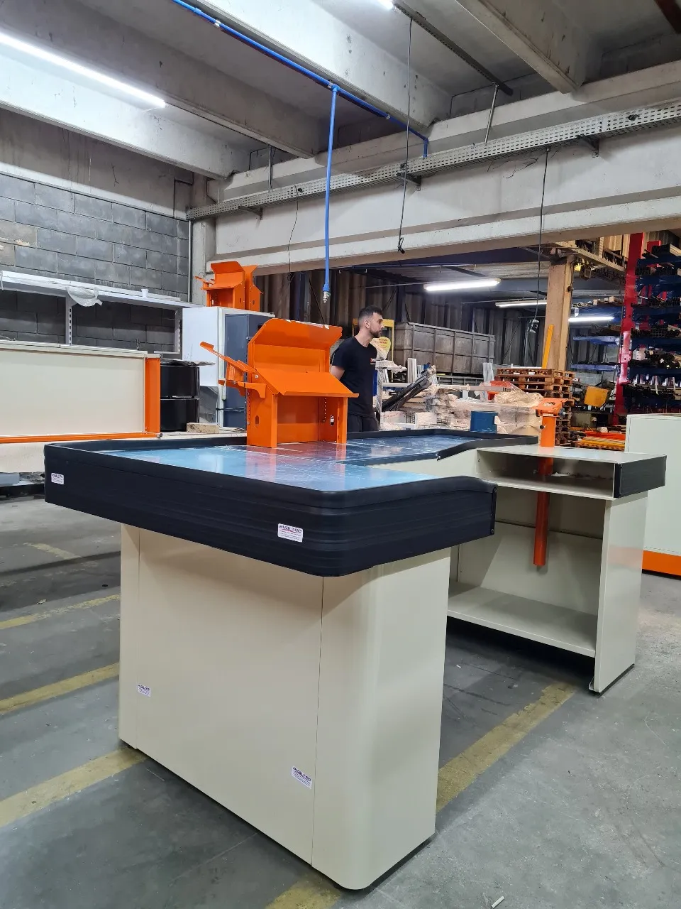 A empresa Módulos Seral Gondolas, especializada em soluções para armazenamento e exposição comercial, oferece estruturas de check out adaptadas às necessidades do varejo, contribuindo para a eficiência e organização dos supermercados.