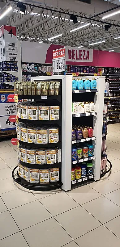 Além disso, a gôndola central proporciona uma organização eficiente, facilitando a localização dos produtos pelos clientes.