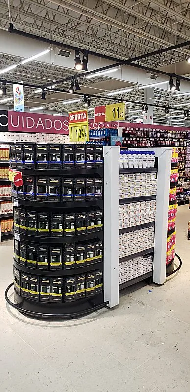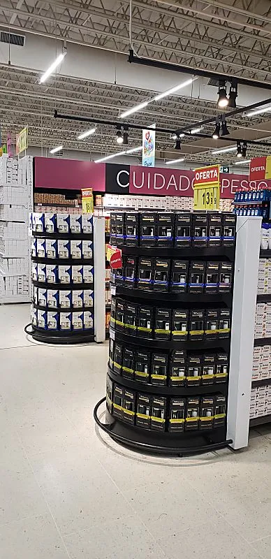 A gôndola central é um tipo de expositor de dupla face posicionado no meio dos corredores de lojas e supermercados.